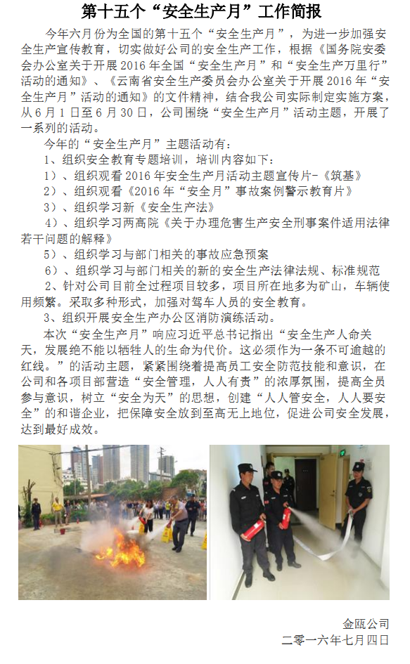 第十五個“安全生產月”工作簡報
